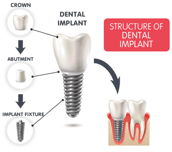 Dental implants are embedded in the bone on the lost tooth position, without affecting the surrounding healthy teeth. They allow the existing teeth to remain in place; otherwise the teeth would tilt and move to that empty loose space.
